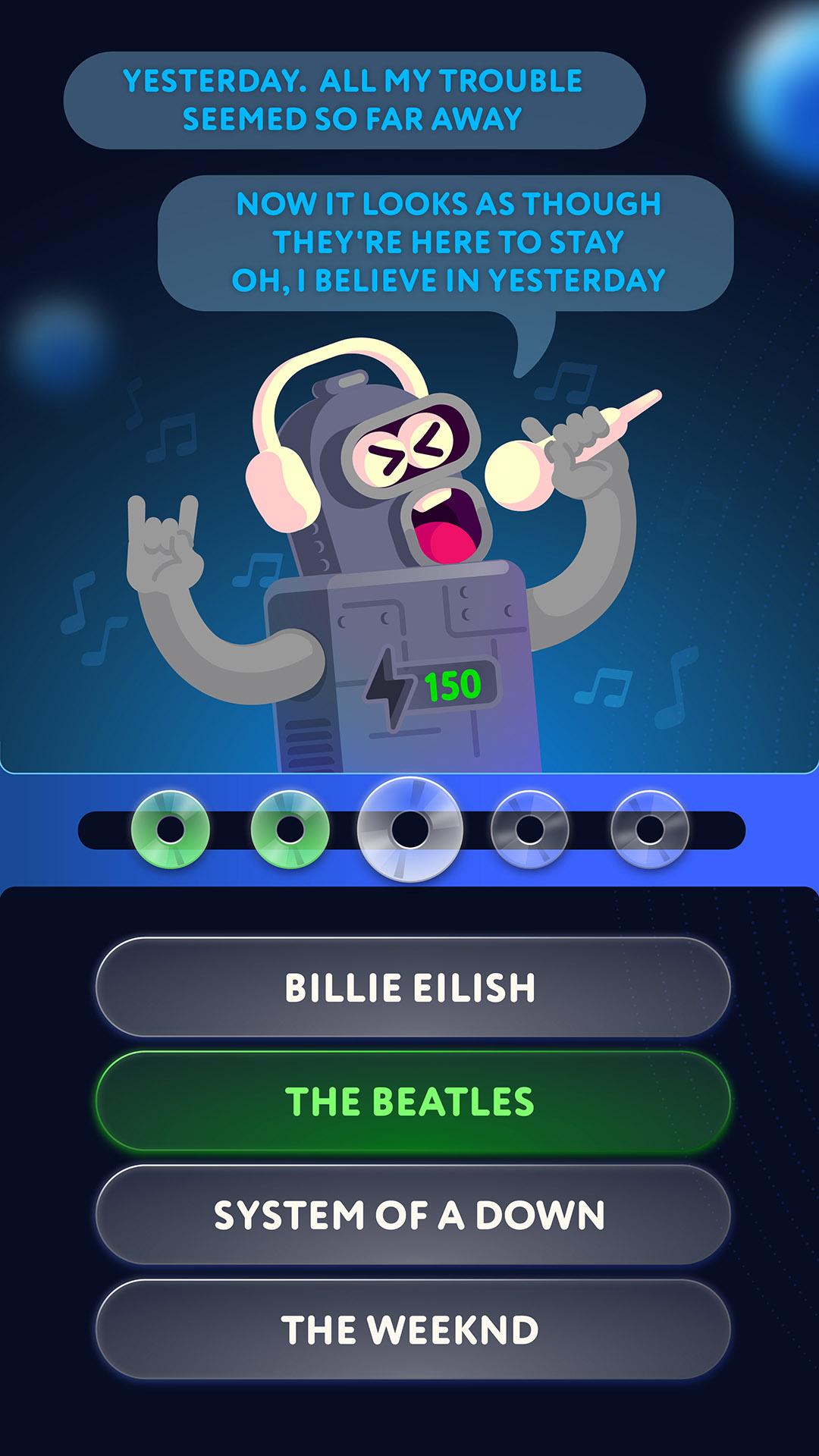 🤘 Everyone, kids, and adults will be delighted with our music quiz. As each song is performed by the charming vocal of the robot Maxim. It makes a new way of sounding even for the old, familiar songs. Due to the level's structure, the songs can be guessed pleasantly and easily. We have collected songs of different levels of complexity and carefully mixed up them. Can't guess who is a song maker? — Make brief pauses, it is enough to look at the answer options from a different angle or use a hint. Don't forget to share the app with your friends, it's easier to guess difficult songs together.