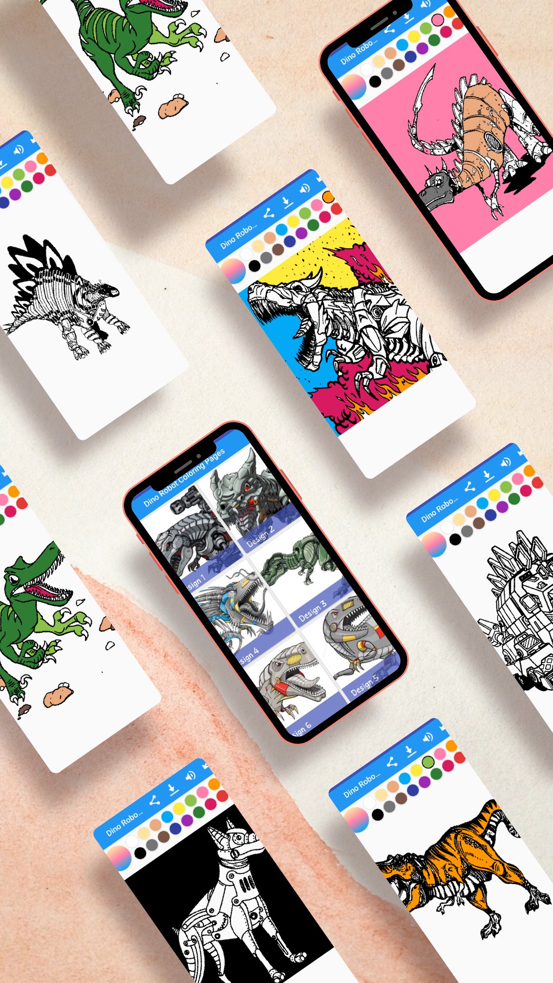 Dino Robots Coloring Pages for adult turned out to be very interesting and varied game for boy actually. Dinosaur Robot Coloring Book is perfect app for everyone who loves coloring game for boy, robot and dinosaur coloring game!