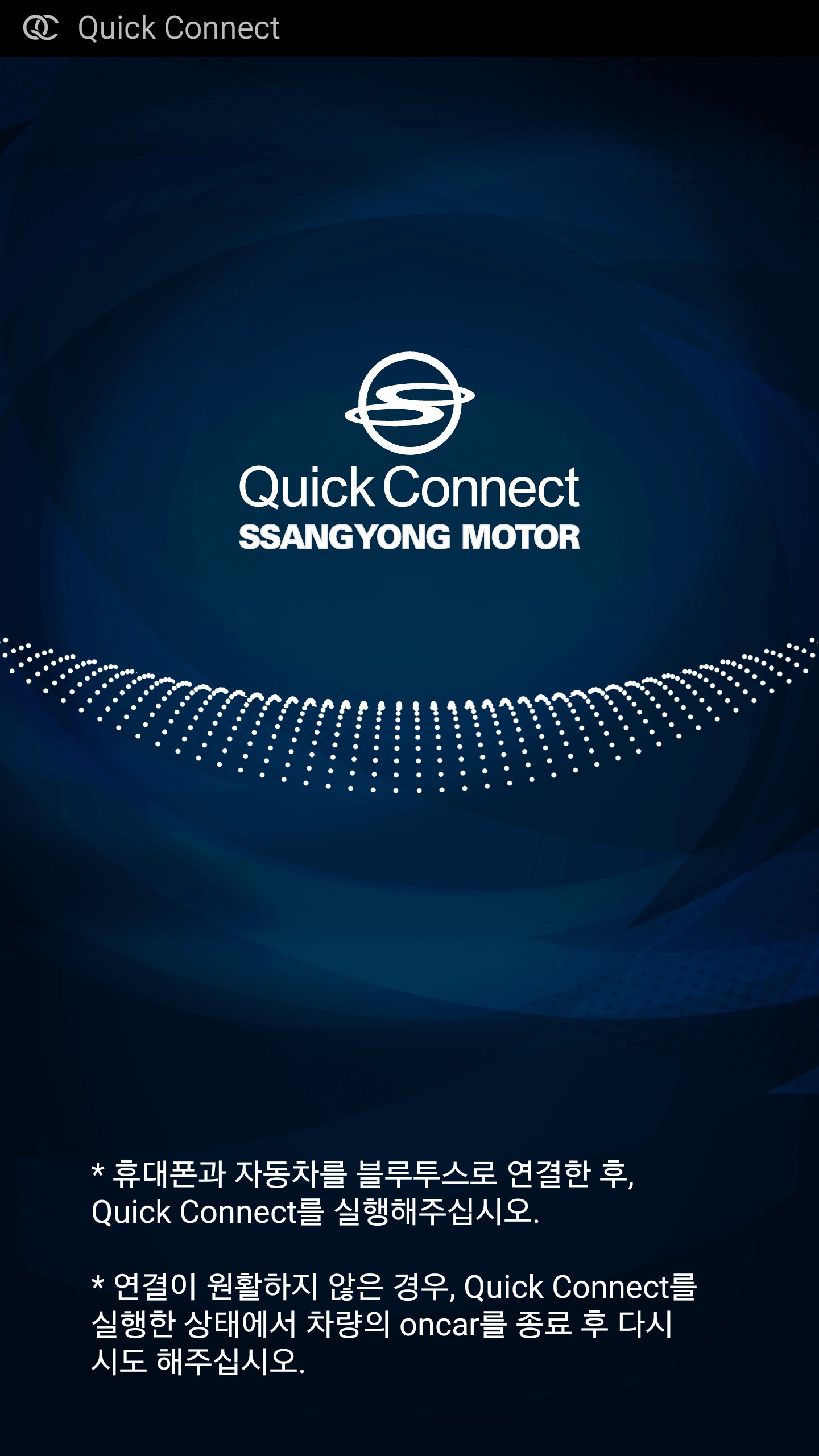 With QuickConnect, you can quickly and easily use the wireless connection (Wi-Fi) between your mobile phone and the vehicle head unit (AVN). The oncar service allows you to use the screen, sound, and operation environment (touch) of a mobile phone equally through car navigation. To use the app, Bluetooth must be connected between the vehicle's head unit (AVN) and the mobile phone in advance.