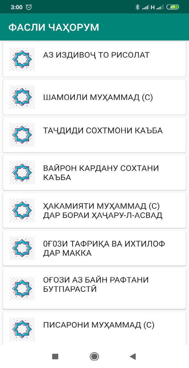 ЗИНДАГОНИИ МУҲАММАД(С) ҶИЛДИ 1 ، القادم من المطور Iqbol ، يعمل على نظام Android في الماضي.