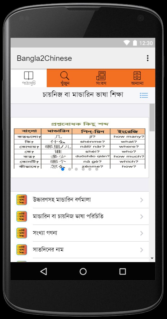 This App popularly known as Bangla To Chinese Learning App or বাংলা থেকে চায়নিজ বা মান্ডারিন ভাষা শেখার অ্যাপ is already became very among the learning community. If you want to Learn Chinese or Mandarin From Bangla/Bengali then please use this awesome resource. This app made only for you! 'চায়নিজ/মান্ডারিন ভাষা শিক্ষার অ্যাপ' could be best friend of you!