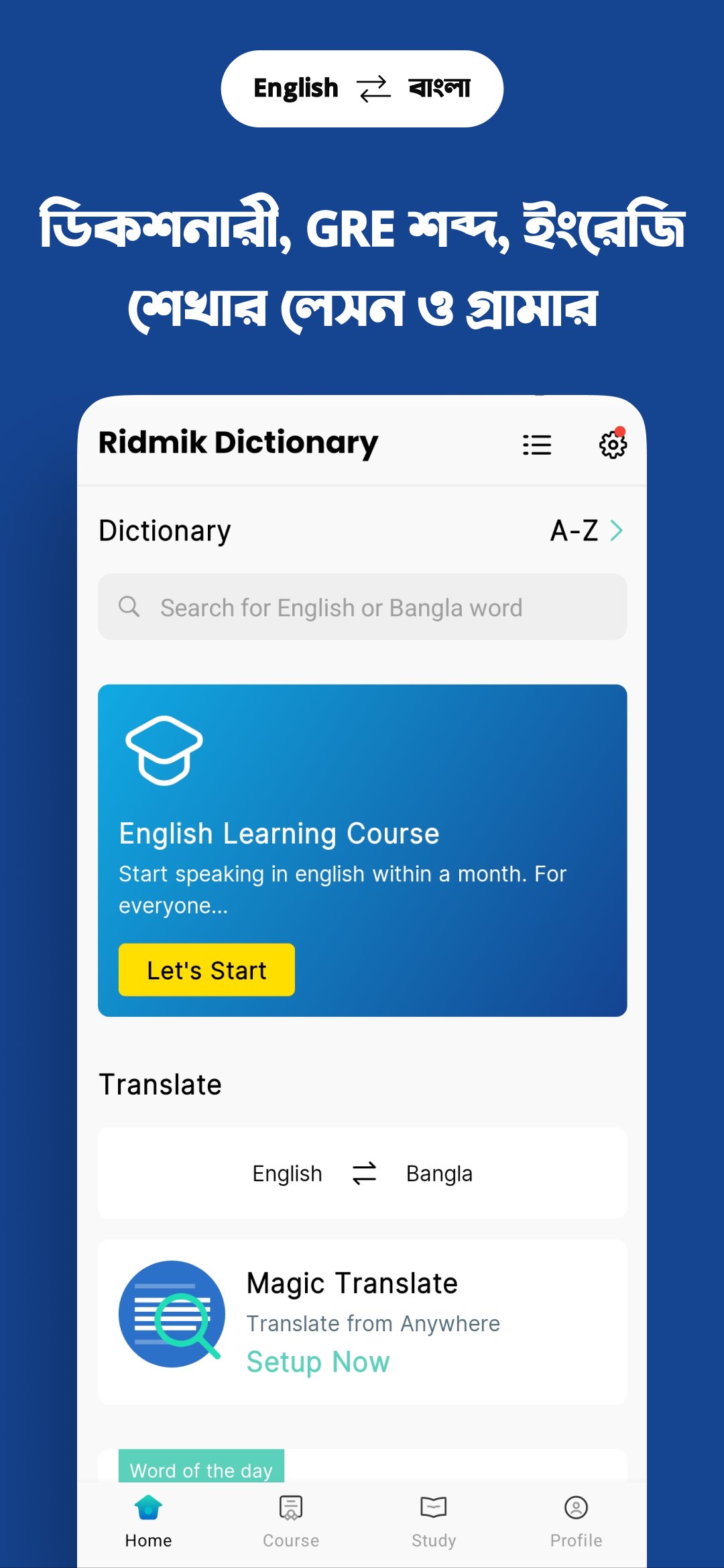 There is also an English to Bengali translation or digital dictionary to know vocabulary. It also has an offline feature so it can be used without an internet connection.