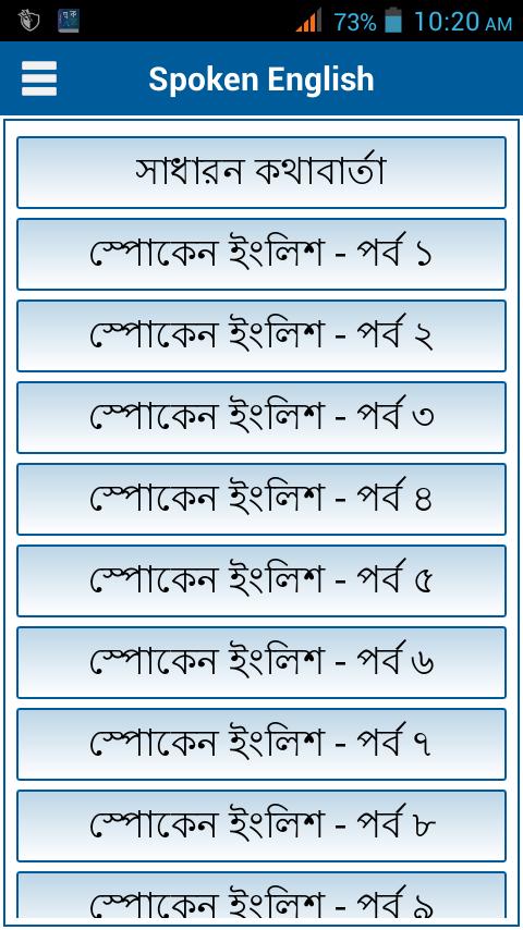 You click on sentence for pronounce or listening. This app help Bengali English Conversation. It works as a Bangla to English Speaking tutorial for fluent English speaking.