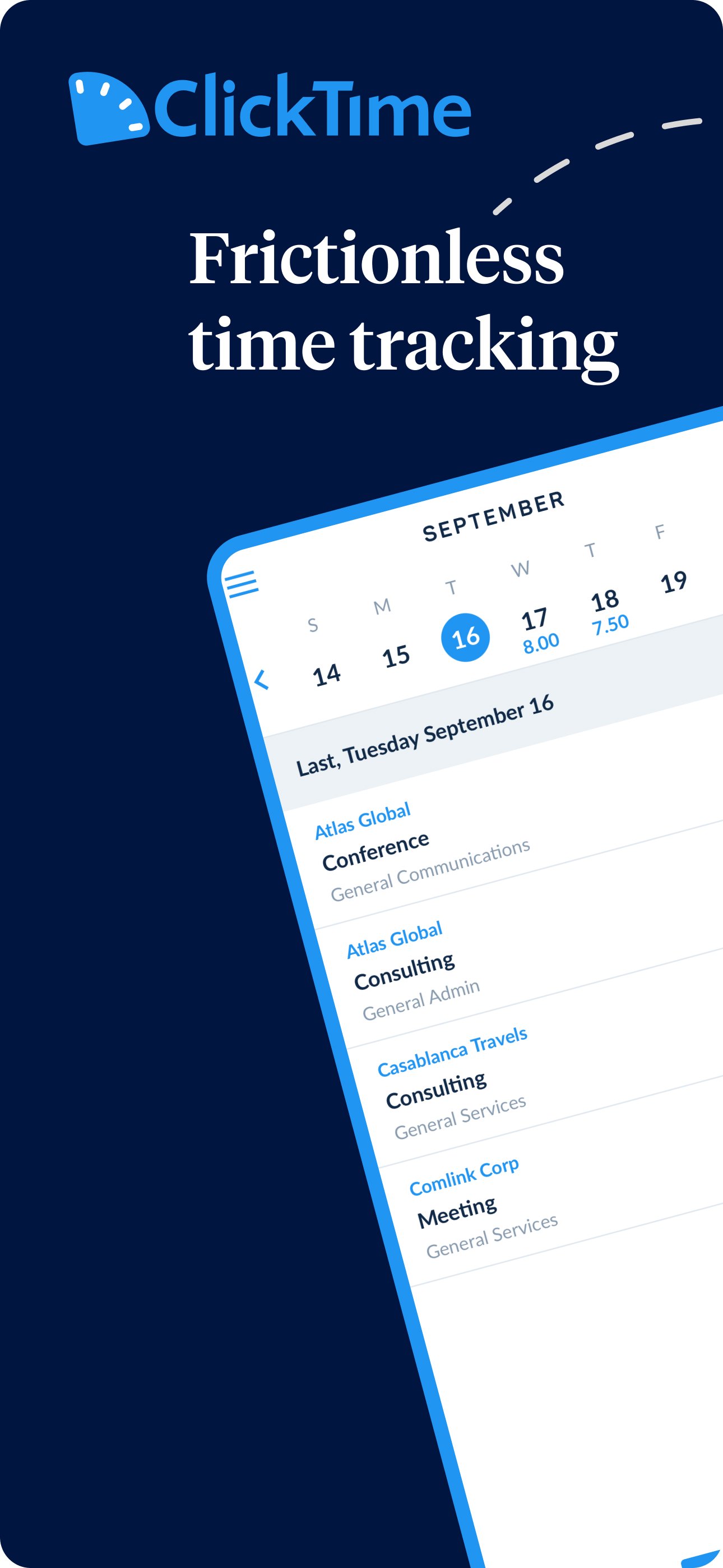 ClickTime makes it easy to track hours, submit expenses, manage time off, and approve timesheets—whether you're in the office, on-site, or on the move.