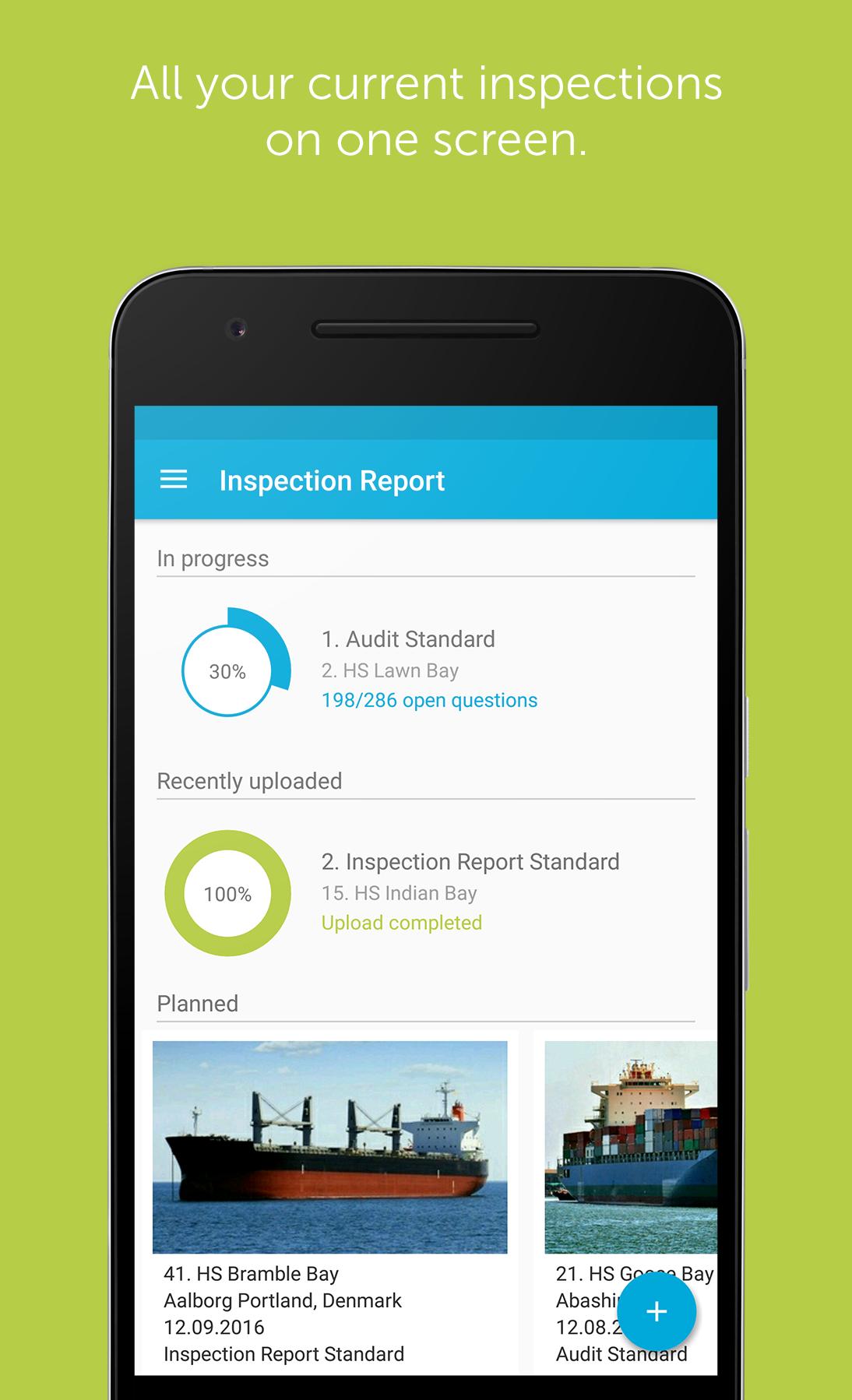 Profit from optional standardized surveys for your company or set up ad-hoc-audits. No matter what you do, Inspection Report will support you to reach high-quality and precisely evaluable results. These results can be used to judge the performance of your crew and the condition of your fleet.