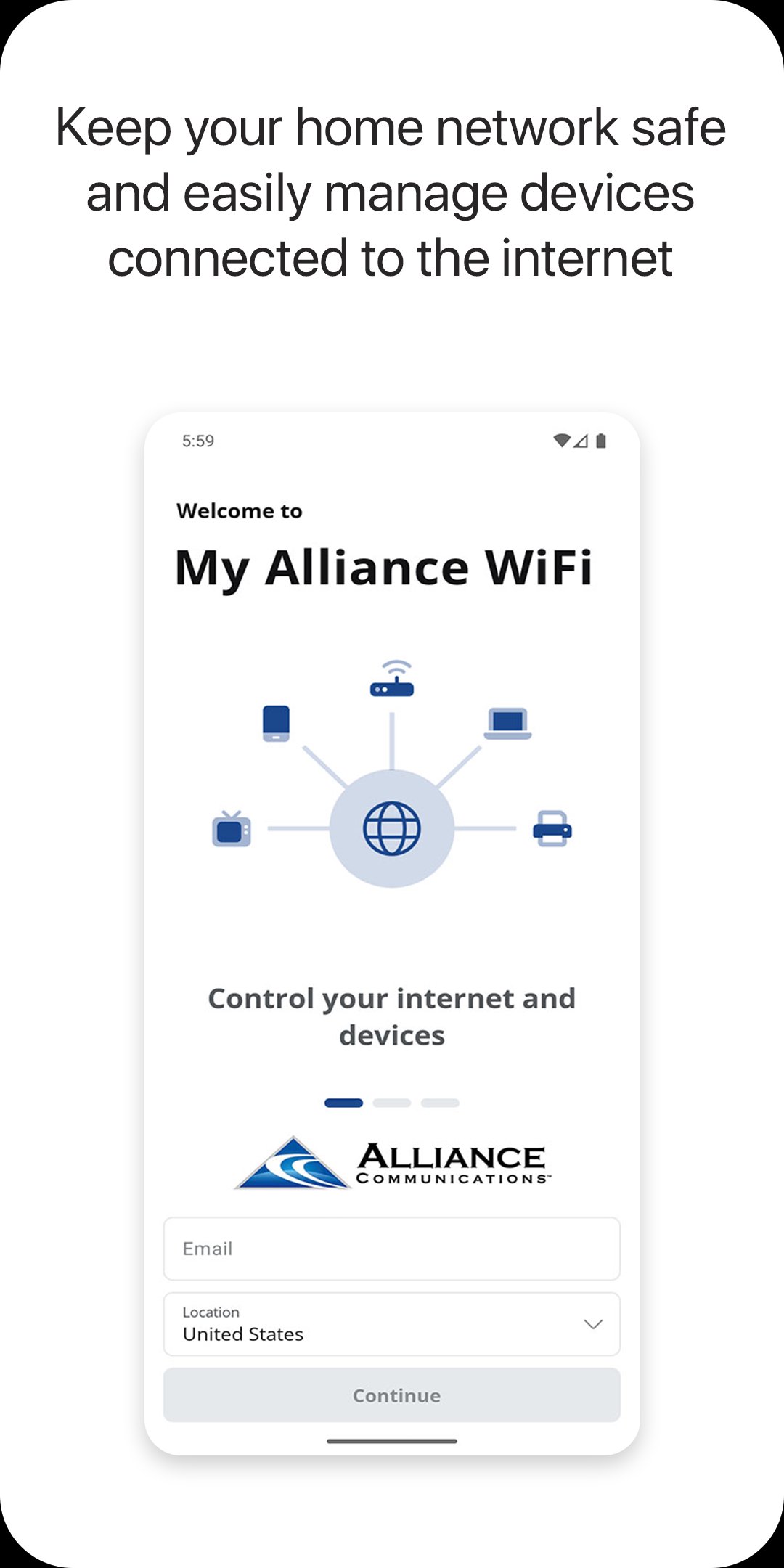 My Alliance WiFi is a mobile application that allows you to easily enable Wi-Fi for your guests and set parental controls. Control your network from anywhere with device management, viewing connected devices, and SSID management.