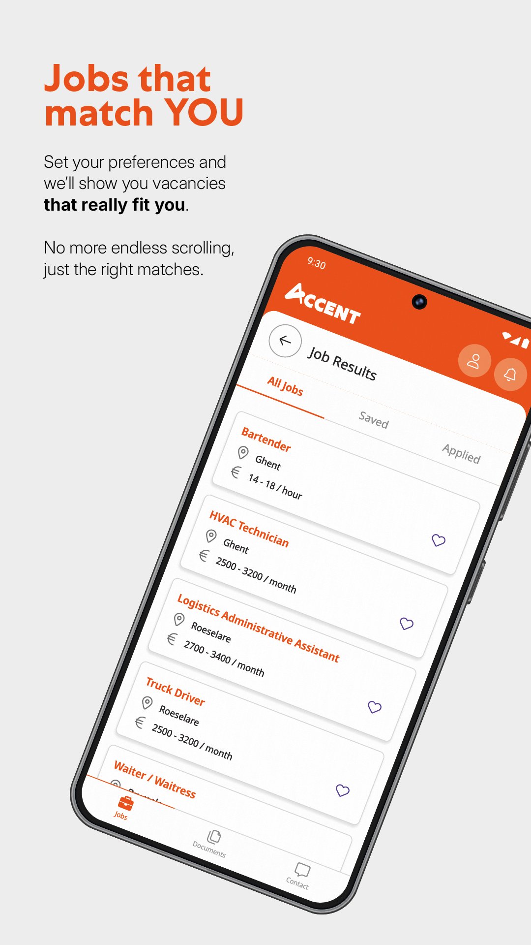 With the MyAccent app, finding a job that suits you is quick and easy. Everything you need is always at your fingertips: