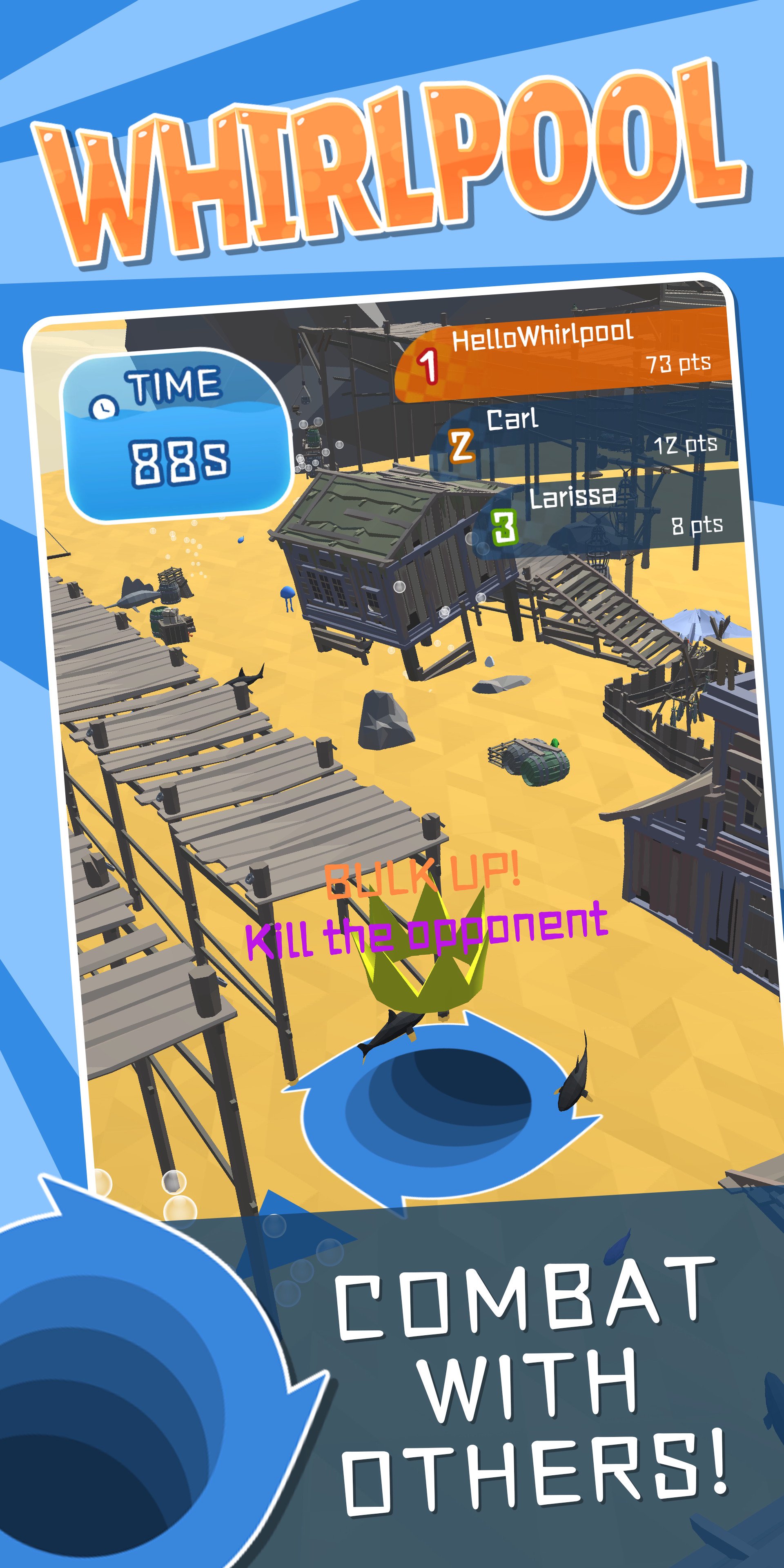 Eat everything in sight with your whirlpool and expand it to eat more! Show them who is the biggest whirlpool on sea!