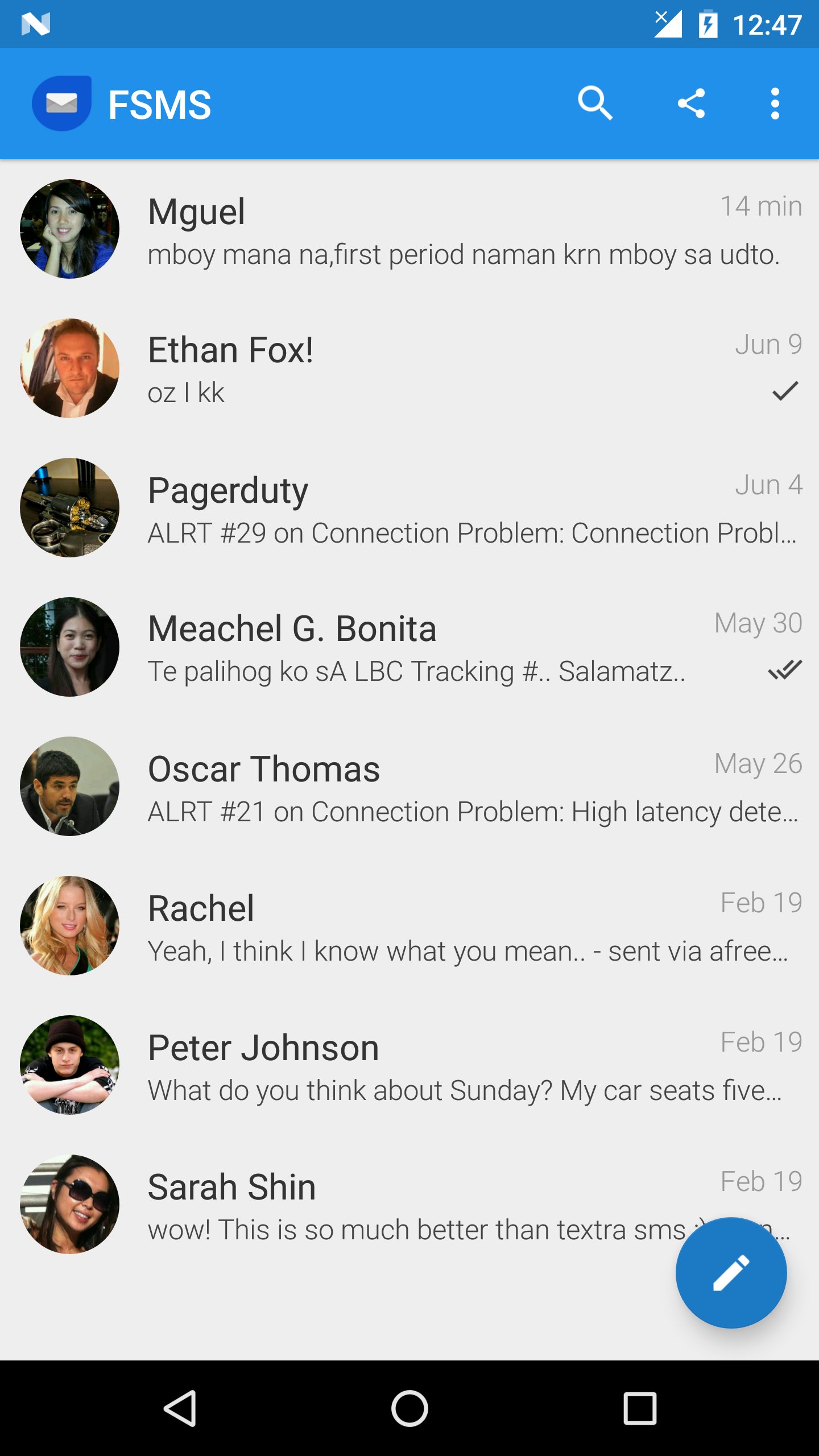 SMS texting made easier with FSMS. Aside from being SMS/MMS app, you can optionally send text messages to Philippines. FSMS is designed to be simple, reliable and secure. NO sign up needed, Just install and send text message to any Philippine networks. Overseas Filipino workers (OFW) and Filipinos all over the world can easily send text/SMS directly to their families and friends thru this app.