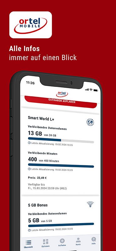 With the Ortel Mobile App, you have all the important information about your Ortel Mobile SIM card in view. Book tariff options, check your usage and top up credit - it's easy with the Ortel Mobile app!