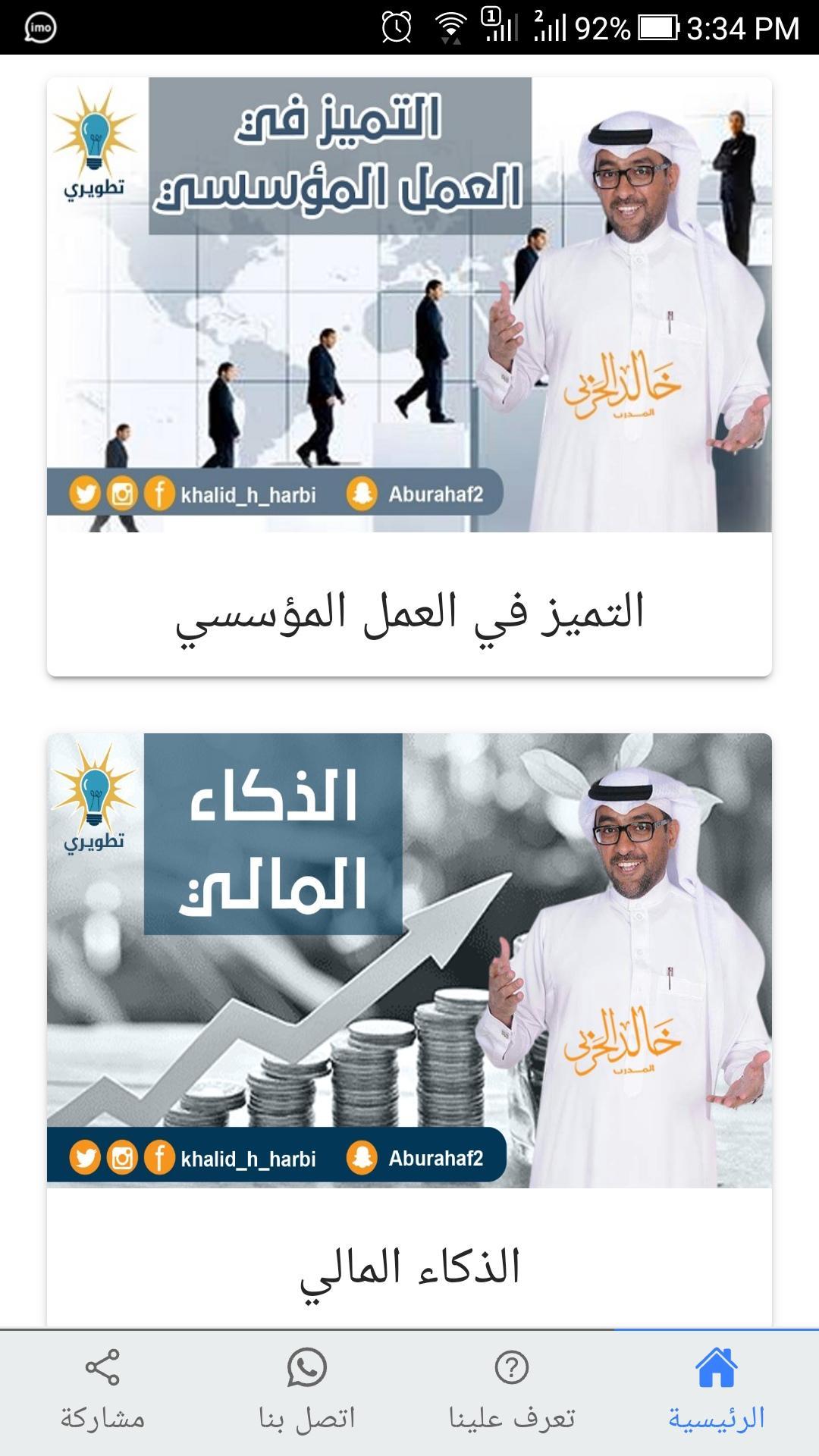 An application in which trainer Khaled Al-Harbi's courses are displayed