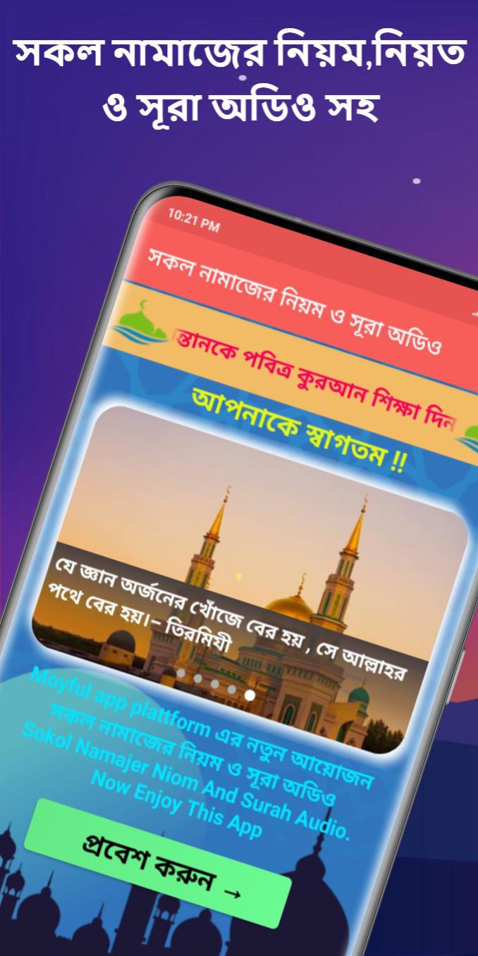 সকল নামাজের নিয়ম ও সূরা অডিও ، القادم من المطور Moyful app plattform ، يعمل على نظام Android في الماضي.