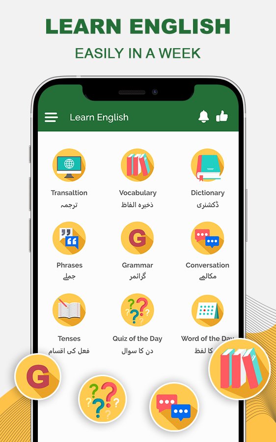This Learn English Language app contains different sections so that one can understand and learn what to speak and more importantly where to speak. You can learn basic and to some level advance English Speaking with our English language course in Urdu. In our app we have also involved English Grammar, English Tenses lessons in Urdu and Urdu to English Dictionary, English Translator, Spelling Checker and English Pronunciation Expert with the help of those you can learn the fundamental concepts of English Language.