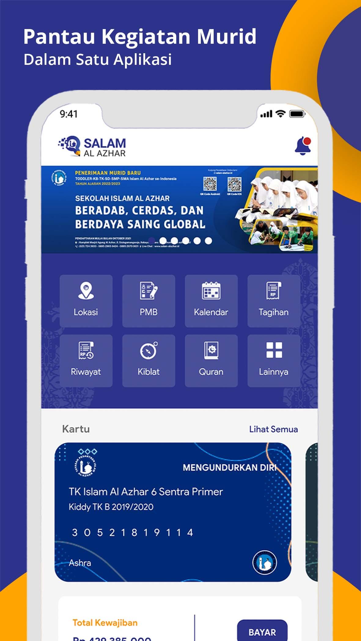 Salam Al-Azhar is the official platform presented by Yayasan Pesantren Islam Al Azhar to facilitate the activities of students. Salam Al-Azhar is designed to facilitate and accelerate the process of admission of new students (PPDB) & transfer, payment of tuition, academic information, and the best communication services that presented specifically for the Al Azhar community.
