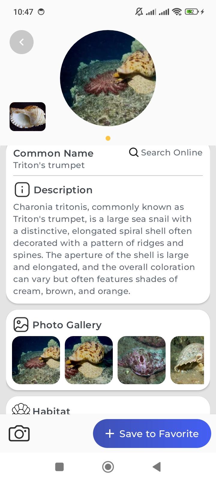 You have seen a lot of snails but do you know what they are called or what species they belong to? Our app will tell you the name and species of your snail just by taking your photo. You can capture snails while they are alive or capture their shells. In addition we can classify other mollusks such as slugs, oysters, clams, and squid.
