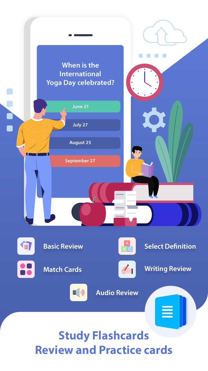 Create an unlimited amount of awesome flashcards sets and learn them anywhere. App provides different practice methods to revise your study contents like Basic review, Select definition, Match cards, Writing review and audio review.