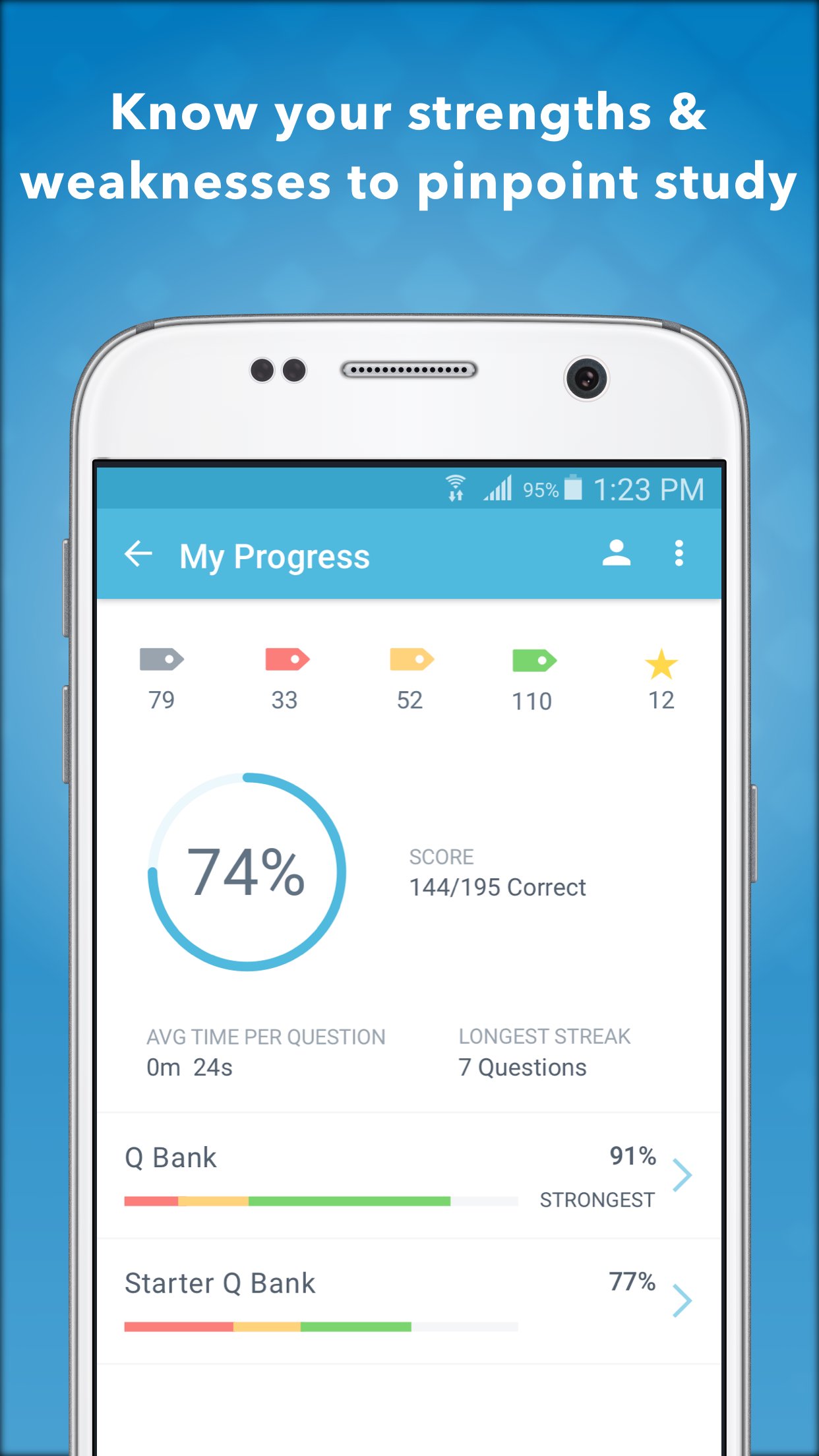 • In-depth statistics that display your strengths and weaknesses