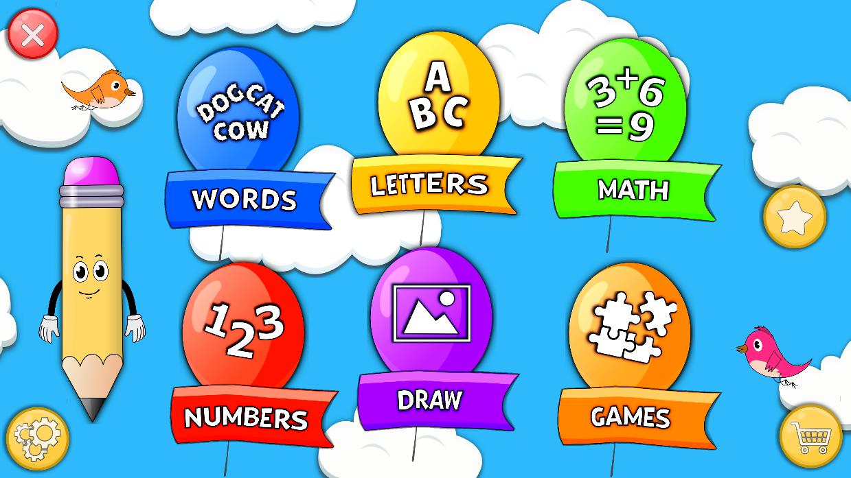 The game enables the child to learn the spelling and tracing of letters and words, learning numbers and simple math operations.