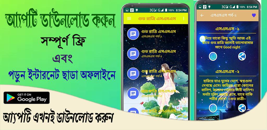 Welcome to the Good Night SMS app. Here you will find all the nice sms written good night in pure Bengali.