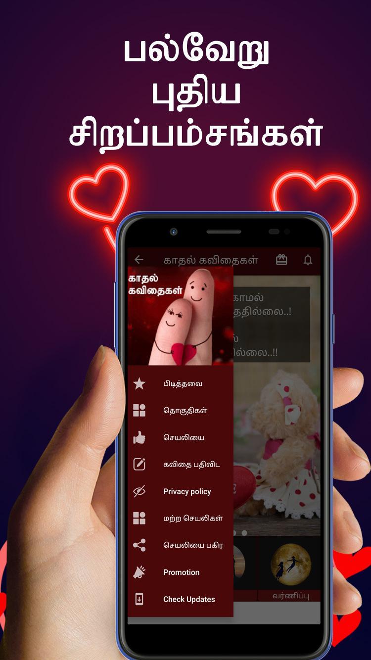 அச்செயலியில் காதல் செய்யும் ஒவ்வொருவரின் மனநிலைக்கு ஏற்றவாறு, பல வகையில் காதல் கவிதைகள் தொகுக்கப்பட்டுள்ளது…!!