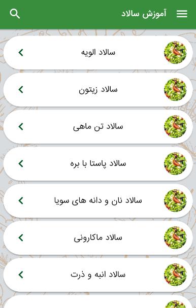 در این اپلیکیشن آموزش انواع سالاد زیر قرار داده شده است ؛