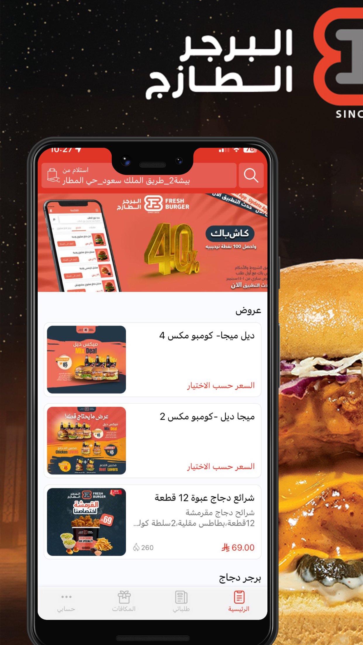 تطبيق Fresh Burger للطلب عبر الإنترنت هو أسرع طريقة لطلب مفضلاتك والاستفادة من القسائم والعروض الترويجية الحصرية. الآن يمكنك الاستمتاع بوجباتنا المفضلة سواء كنت في مكاننا أو مكانك.
