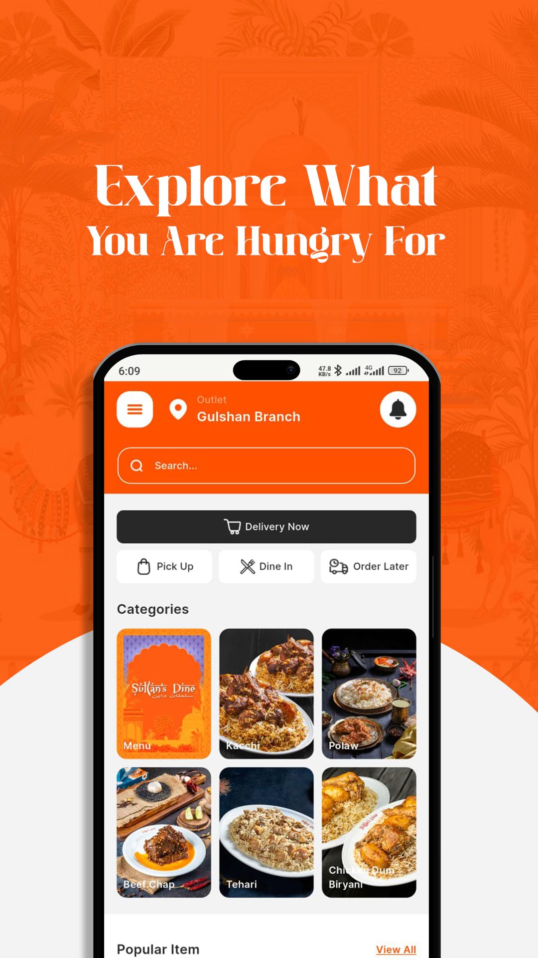 Experience the symphony of flavors & authentic taste with the official Sultans Dine app — your gateway to premium-quality Kacchi Biryani, traditional rice dishes, and mouth-watering sides, delivered right to your doorstep.