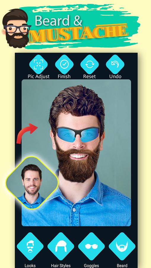 Men Beard Hairstyle app, An amazing and funny photo editor designed specifically for boy and men, will give you an amazing look with fantastic men hairstyle and goggles, beard and mustache styles. Everyone will impressed with new design.