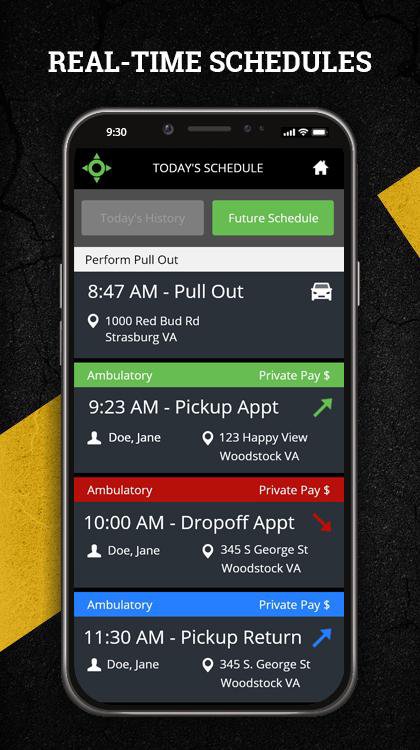 Driver mobile application for MediRoutes - a scheduling, dispatching and billing software for the Non Emergency Medical Transportation (NEMT) Provider market. This applications displays an interactive driver schedule, allows the driver to mark pick-up and drop-off events as complete, keeps driver schedules current with changes as the day progresses, and prompts users for driver and passenger signatures as needed. GPS tracking is included to allow dispatchers to effectively handle same-day additions, pickup requests and general schedule adjustments. Additionally, driver timekeeping can be managed and vehicle inspections can be completed within the app. Light and dark themes can be chosen by the user, ensuring a great experience day or night.