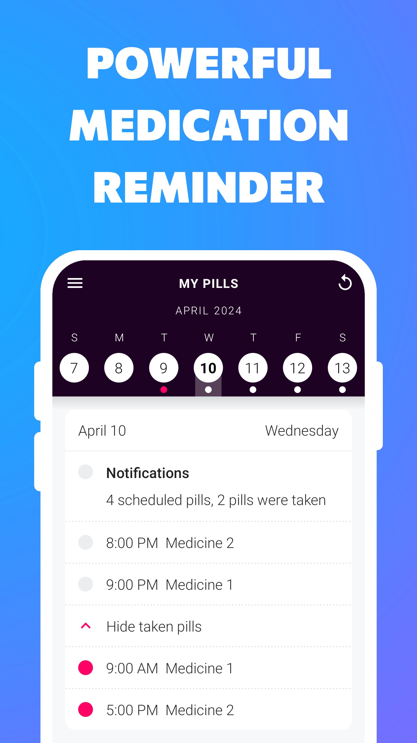 Medication reminder is an easy-to-use and strong reminder to take meds on time. This medicine tracker allows us to program any medication schedule and track the entire medication list in a single take medicine app for free.