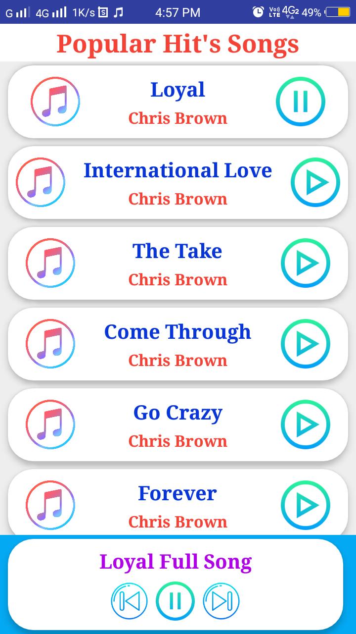 Chris Brown All Songs ، القادم من المطور All Songs & Ringtones ، يعمل على نظام Android في الماضي.