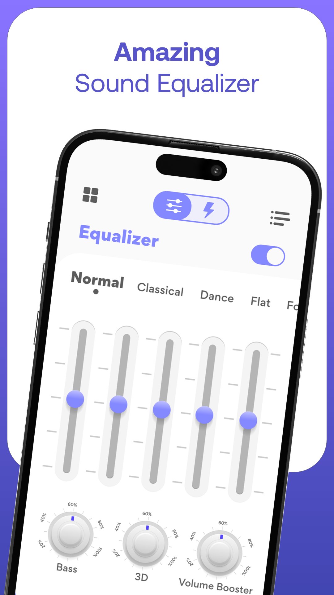 "Equalizer Sound Booster & Extra Volume Booster" App redefines the way you listen to music with a customizable 5-band equalizer, a loudspeaker with the extra sound booster, and a bass booster.