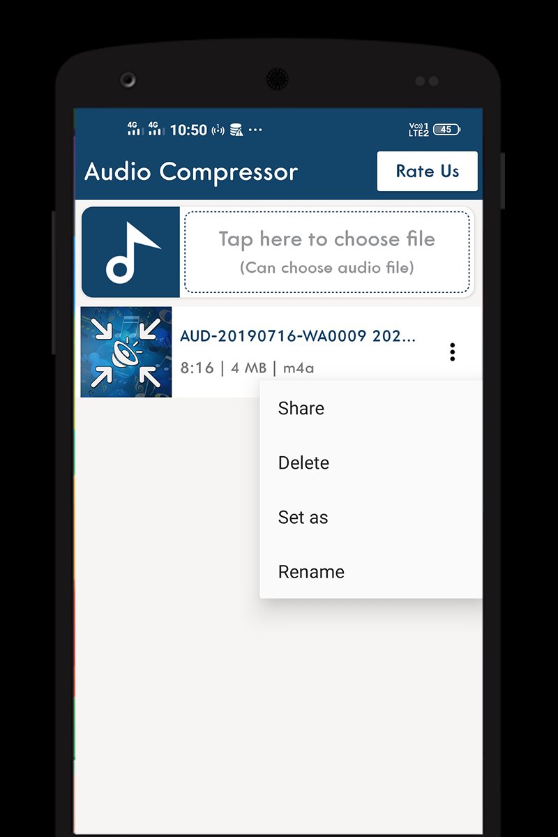 It Compresses Audio in Memory Size in Output with Simple steps & Save File to Your Device.
