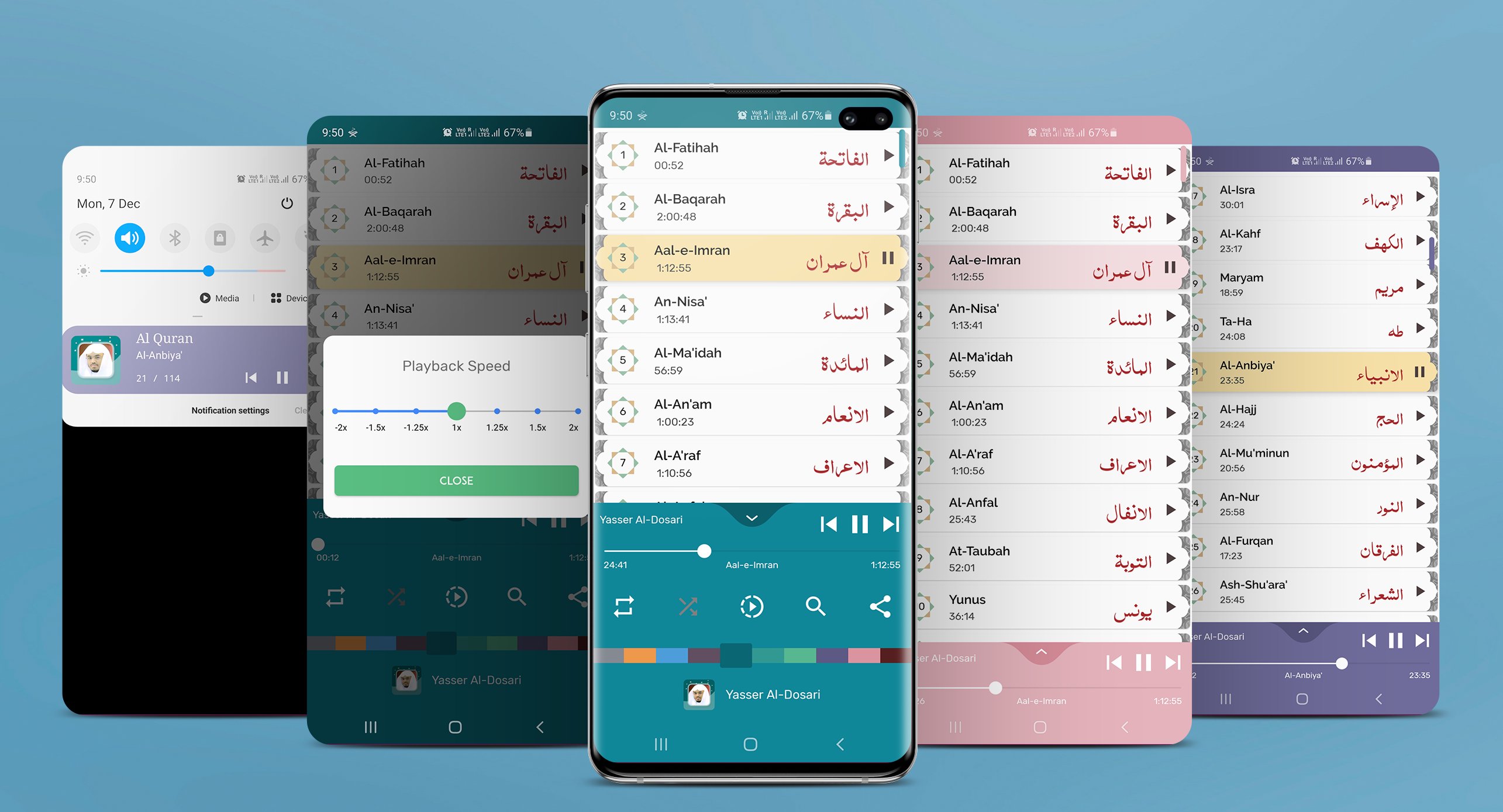 Every Surah will be played back to back automatically. Don't need to tab again and again on every Surah.