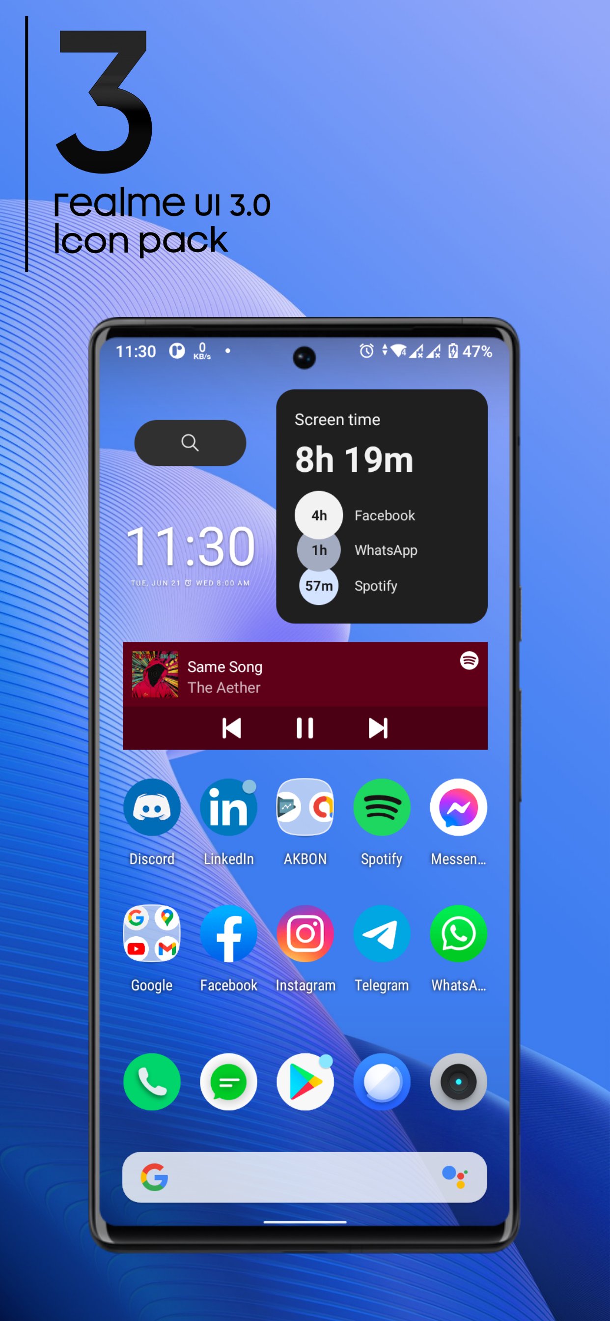 realme UI 3.0 Icon pack ، القادم من المطور AKBON ، يعمل على نظام Android في الماضي.