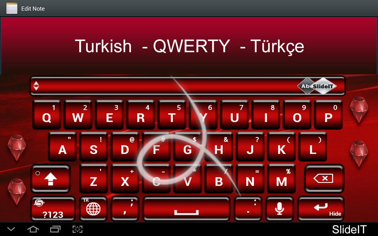 Turkish QWERTY Language Pack add-on for the SlideIT Keyboard v5.0 and up.