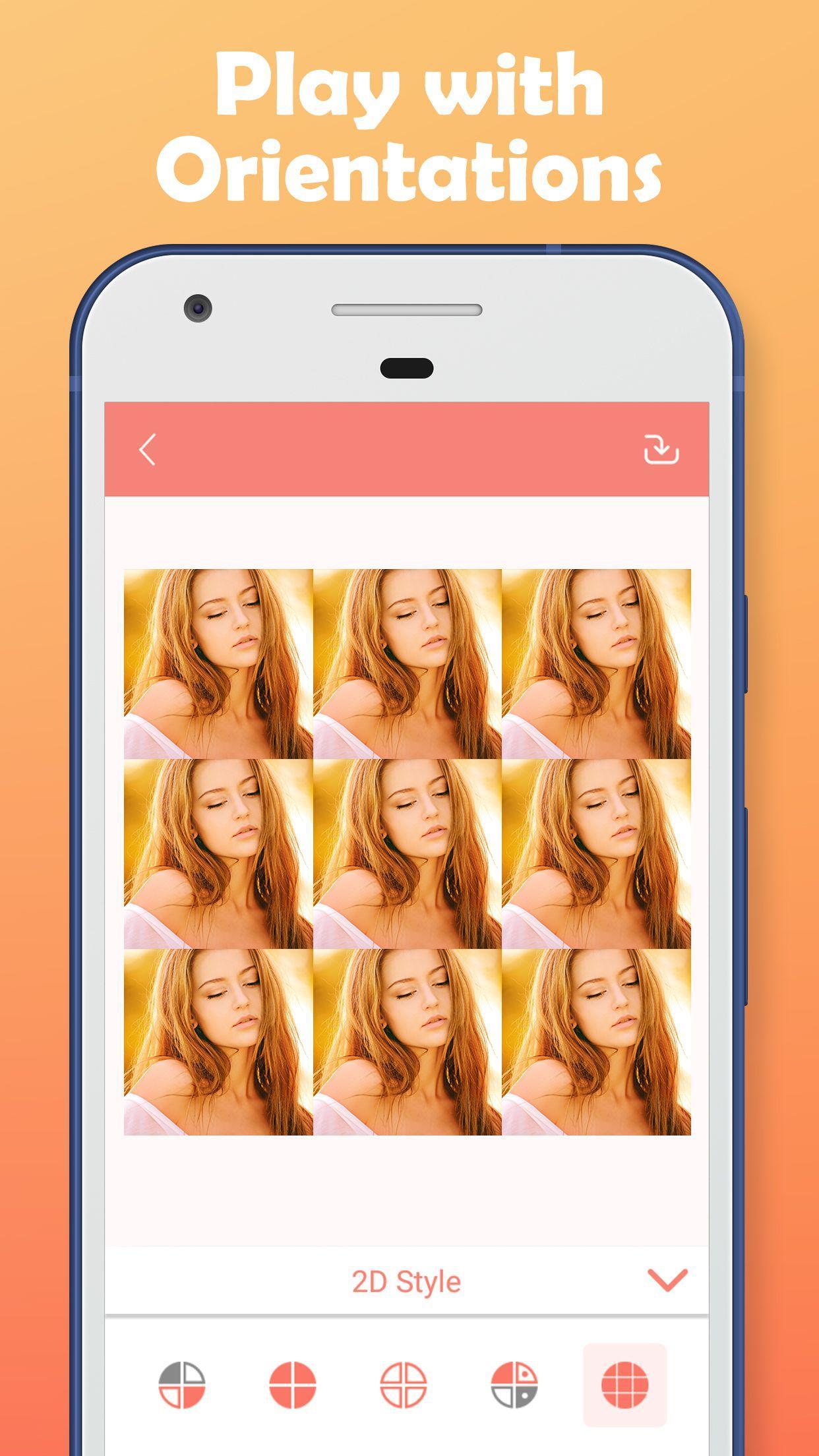 You can create photo grids and photo collages, Mirror Image Photo Editor provides you a great collage maker tool, which will let you to create beautiful photo collages and photo grids. Just select photos and app will give you hundreds of different collage layout and grid options. Create desired collages and grids.