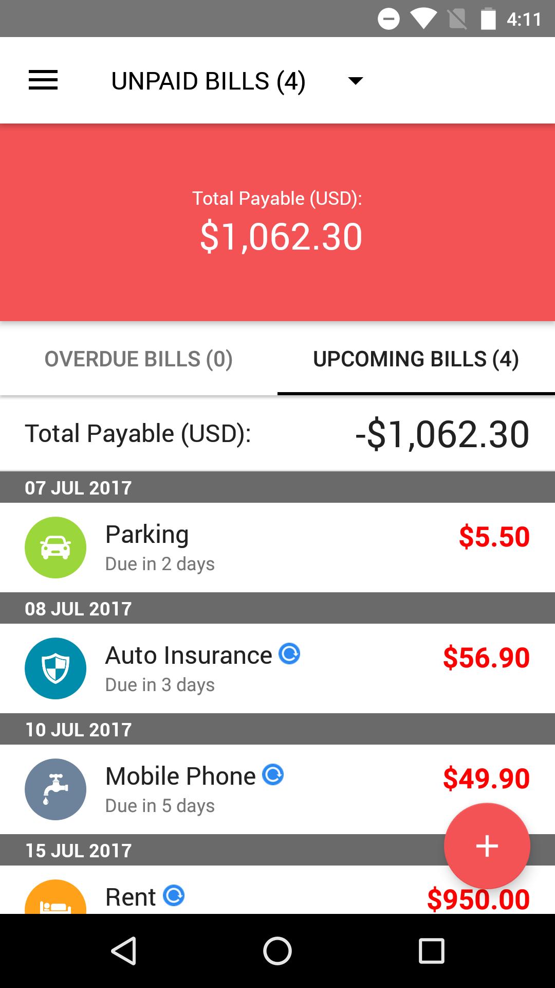 -Unlike other bill tracking apps, Bills Reminders will always fire off when the bill payment is coming due, no matter whether you have opened the app or not or whether you have rebooted your device.
