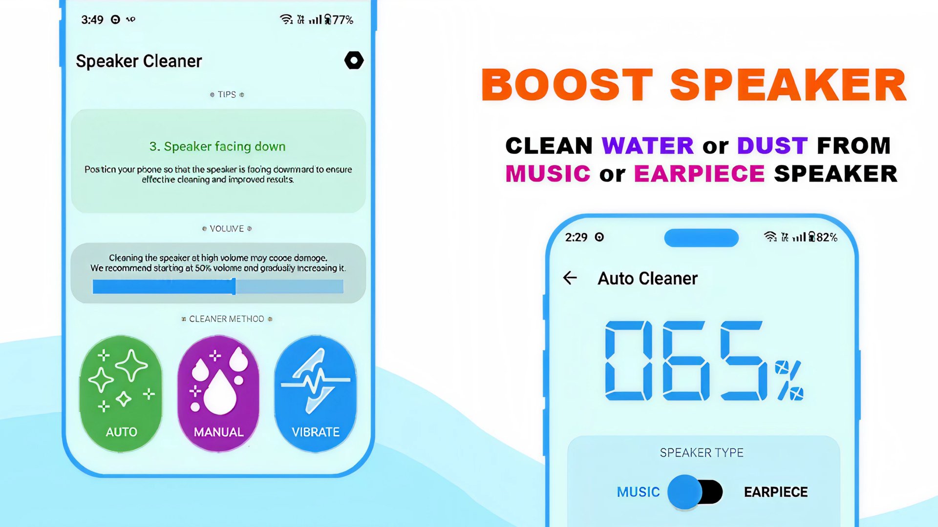 🔊 Clean Speaker App with automatic and manual cleaning modes;