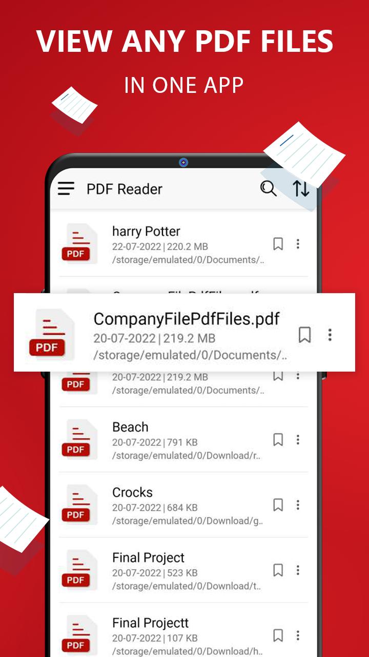 Open, View, and Read PDFs with the fast PDF Reader for Android. A lightweight PDF viewer is free and reliable to read PDF documents and PDF eBooks. THE PDF viewer app makes it very easy to scan & read .PDF files and manage documents on your phone. Our PDF app is the best PDF book reader for Android.