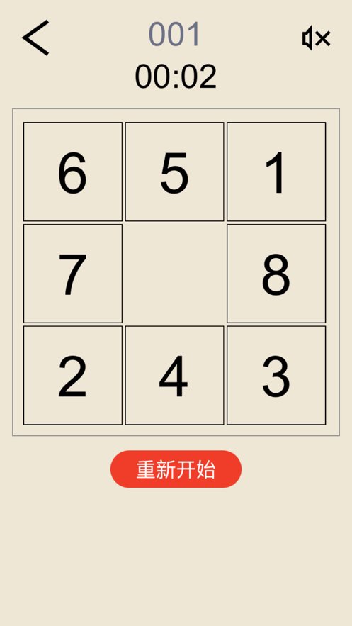数字推盘游戏,游戏开始后随机或固定打乱数字顺序,然后滑动滑块移动回正确的位置。