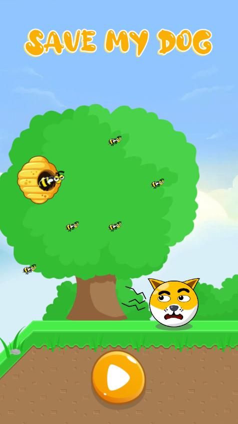 Let's save the dog from angry bee attack! draw line to save the doge from attacks coming out of the bee hive.