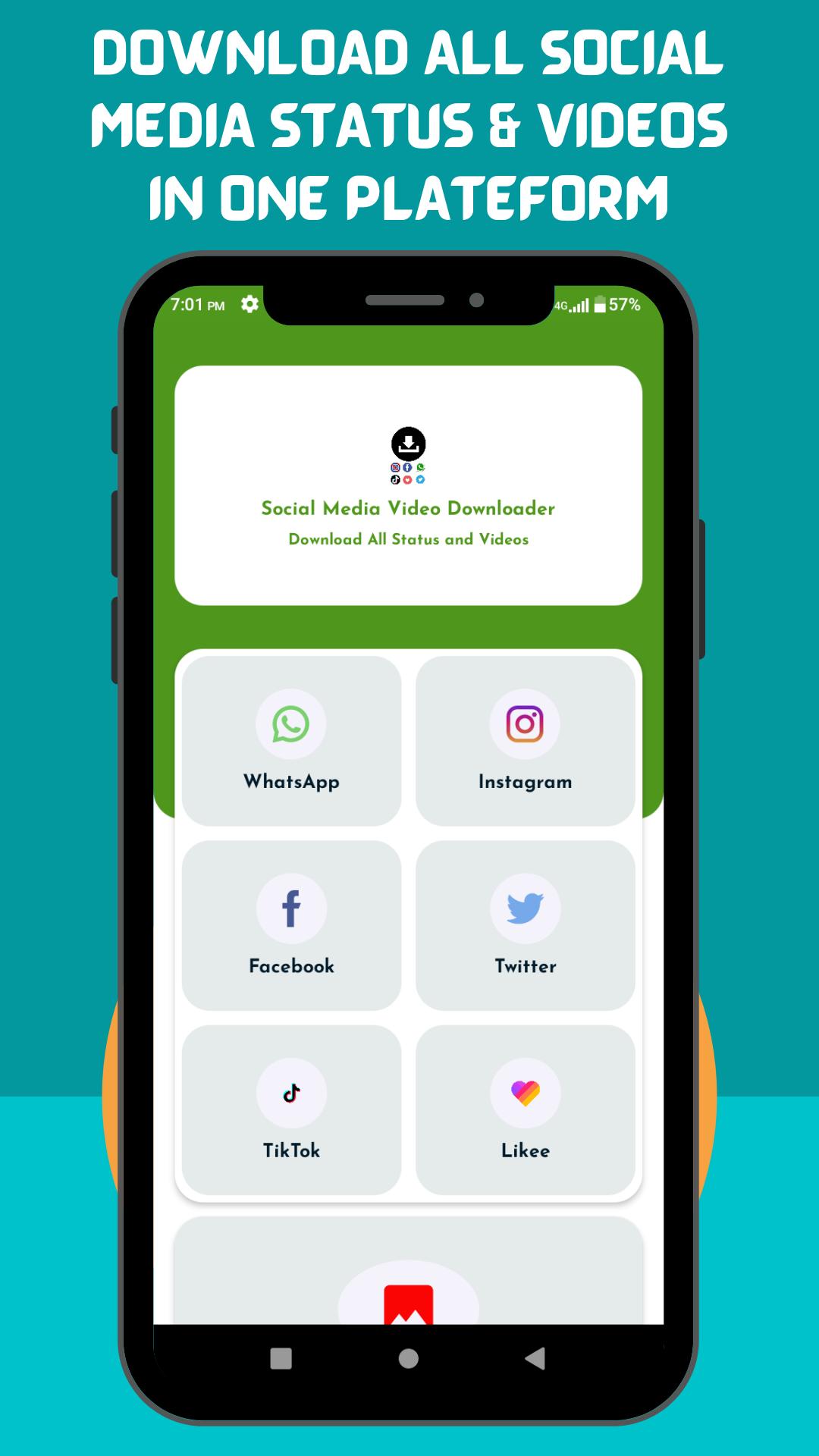 All in One Social Media Video Downloader for almost maximum social media platforms is a free Android App to download All Social Media Videos, status and Images, story saver. It gives feature to Save WhatsApp status, Likee video, Facebook videos, TikTok videos without wathermark , Instagram story and videos and Twitter.