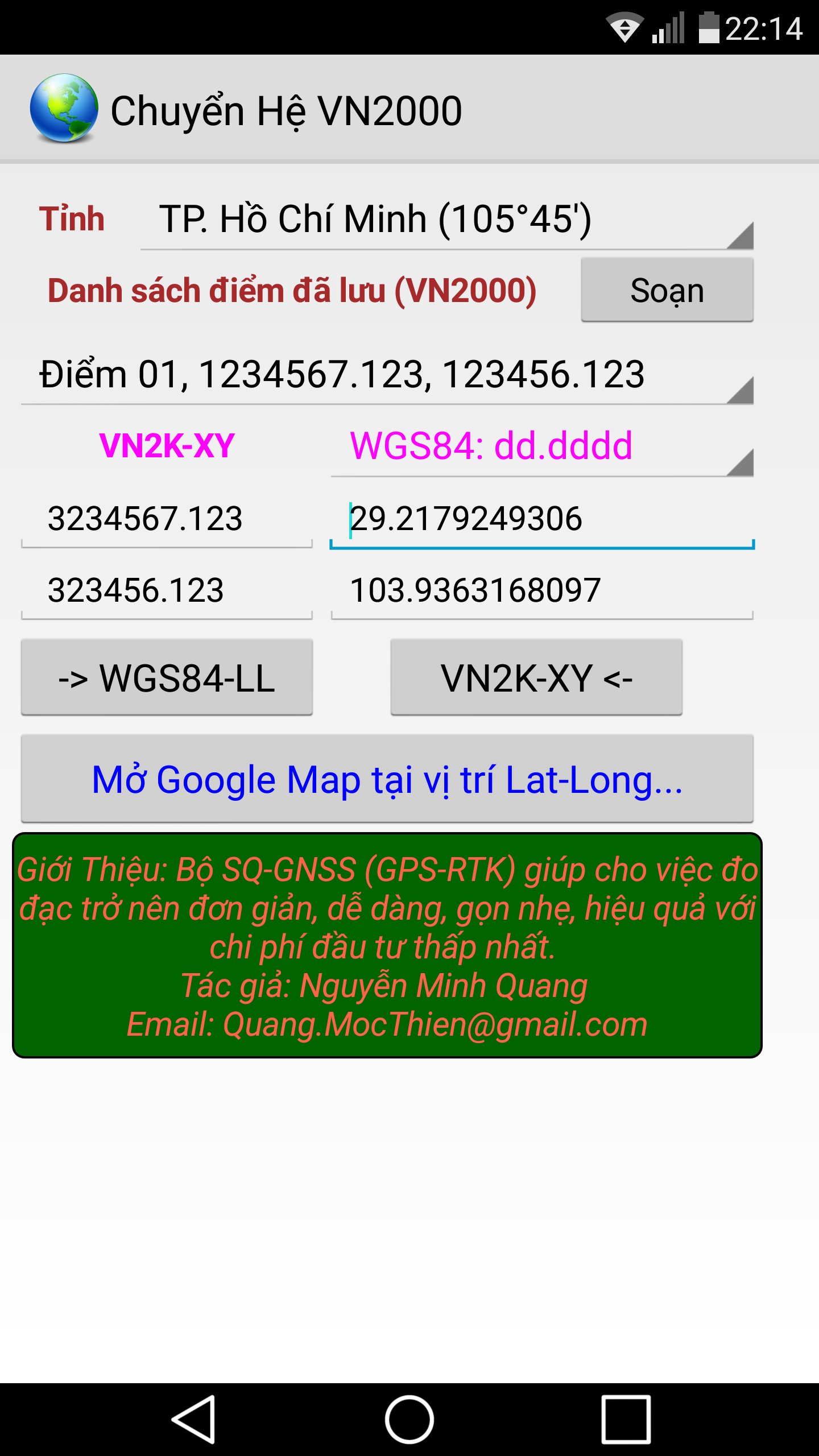 Application used to convert 2-dimensional XY coordinates in VN2000 system to Lat-Long WGS84.