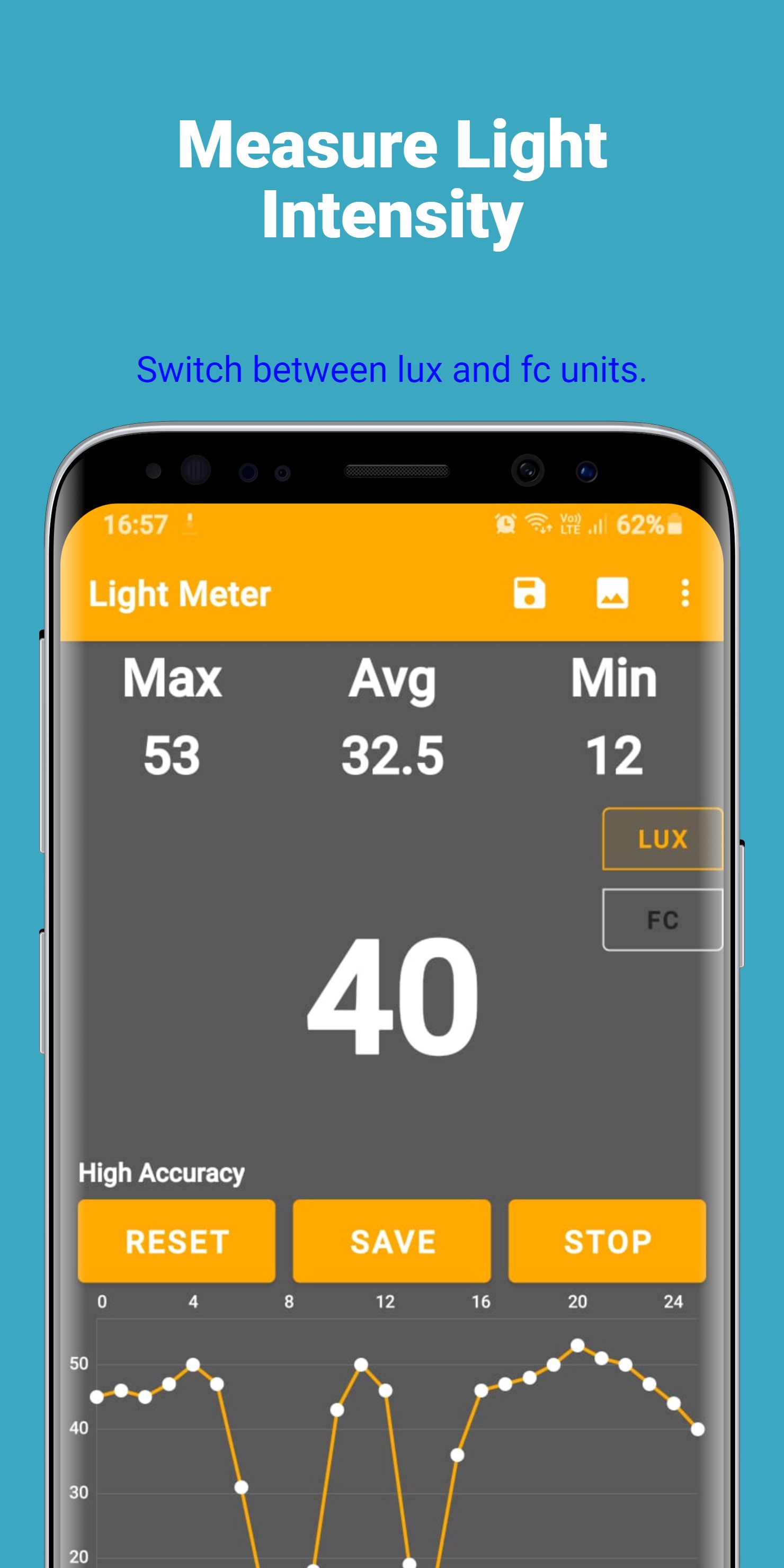 💡 This application is a free lux light meter. With this light meter application, you can measure the illumination level for your plants, measure the light in the photo scene and adjust the exposure, use it for occupational safety measurements, use it for educational purposes, use it for experimental purposes or control the light sensor of your device.