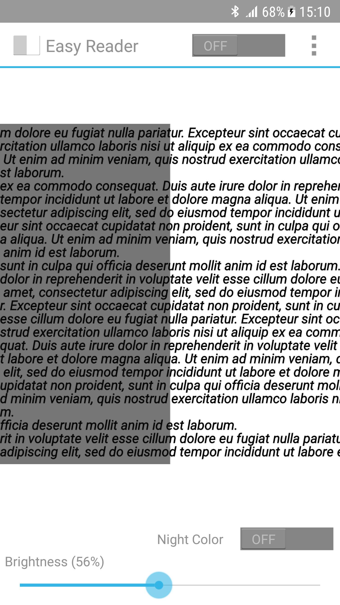 Easy Reader allows you complete control over your screen brightness to allow comfortable reading by night.