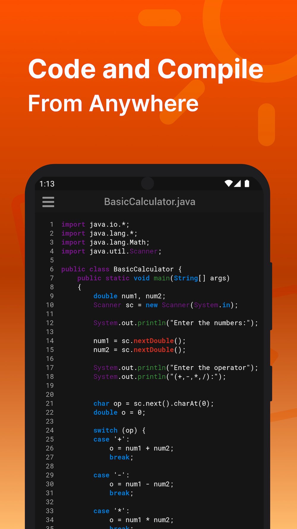 • Your Ultimate Coding Partner: Whether you're working on Java, C++, Python projects, or exploring the potential of AI programming, our mobile IDE serves as your comprehensive Code Editor. It's designed to fit in your pocket, making it your go-to for crafting remarkable applications on the move. With the introduction of Advanced IDE capabilities supporting multiple files, managing complex projects has never been easier.