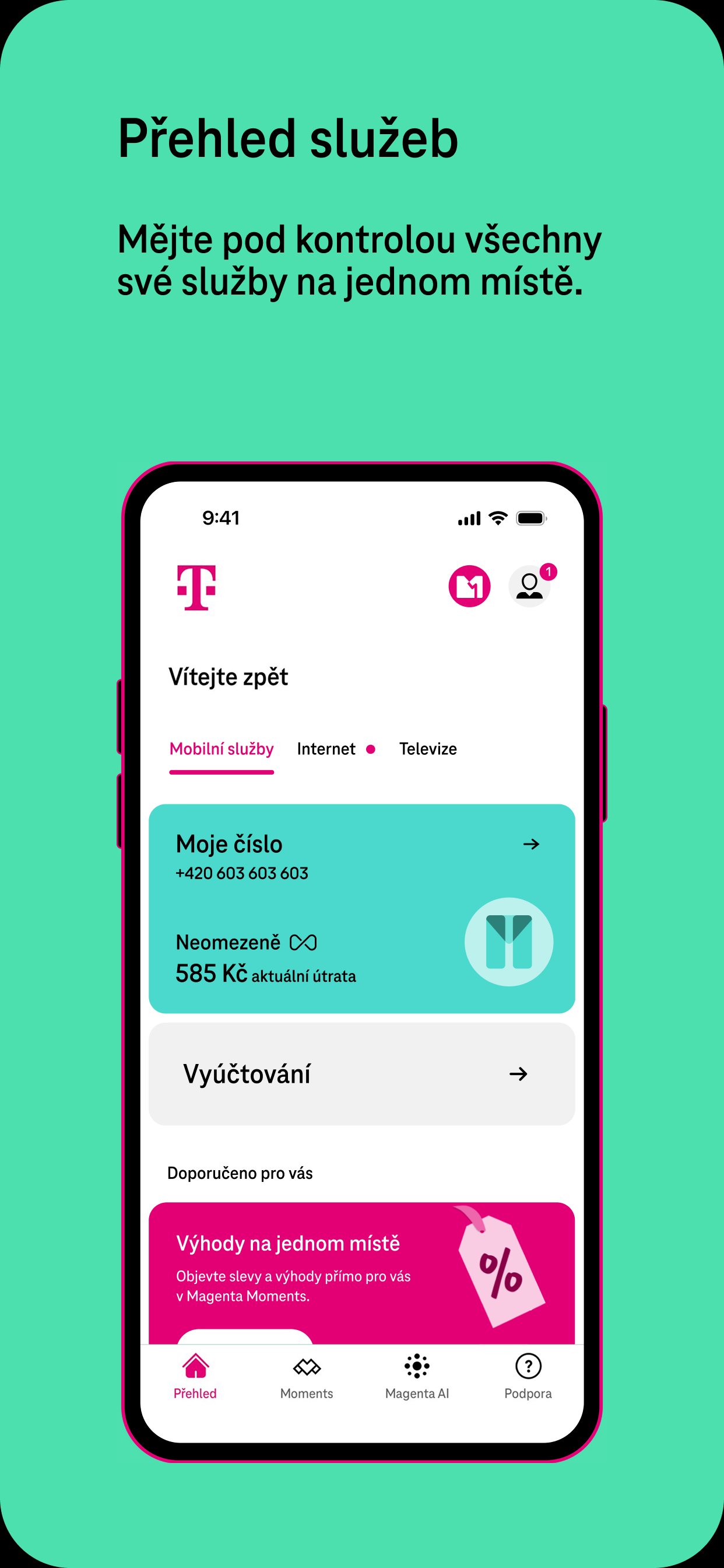 - All of your services in Magenta 1 are put together in the app overview and you can easily distribute shared data between numbers in Magenta 1.