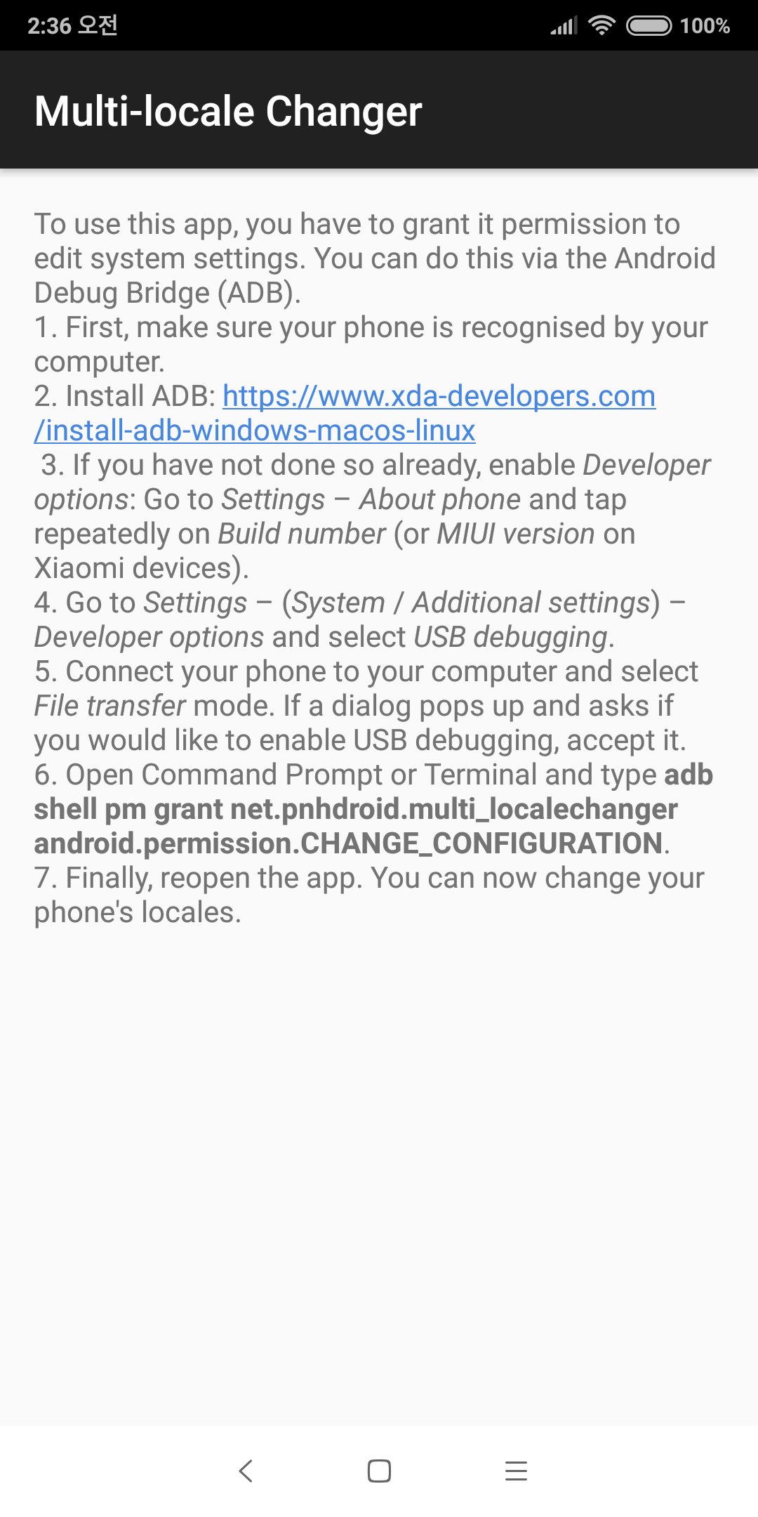Multi-locale Changer ، القادم من المطور HydrogenPhosphate ، يعمل على نظام Android في الماضي.