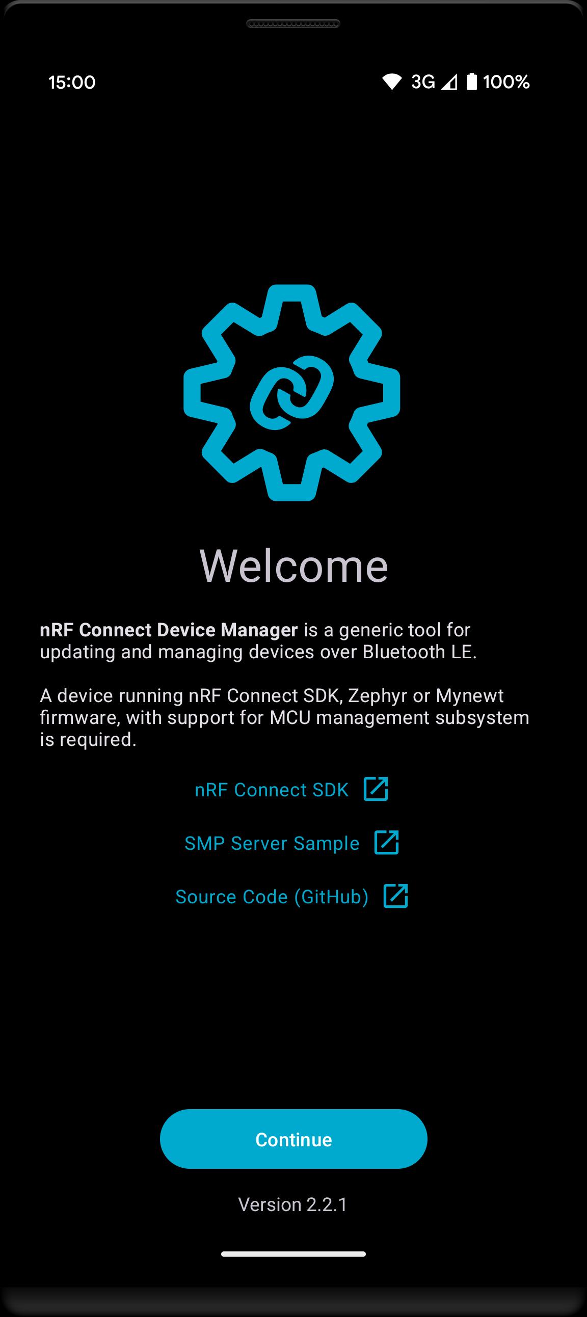 nRF Connect Device Manager is a generic tool for updating and managing devices running nRF Connect SDK supporting Device Manager module over Bluetooth LE (aka Management Subsystem, Mcu Manager, SMP Server).